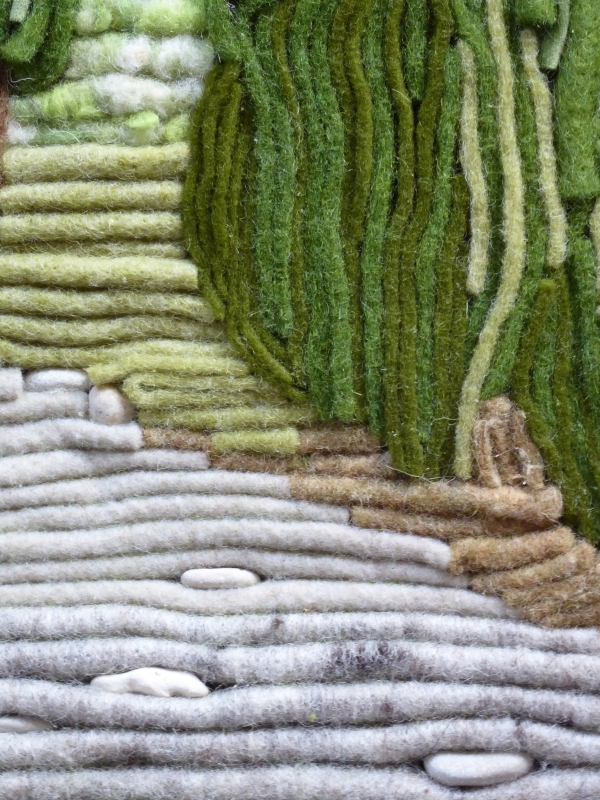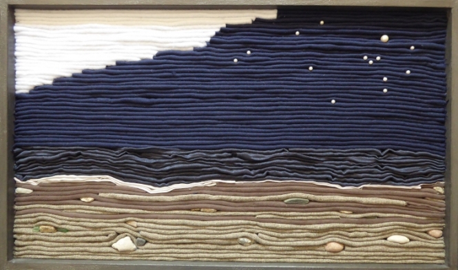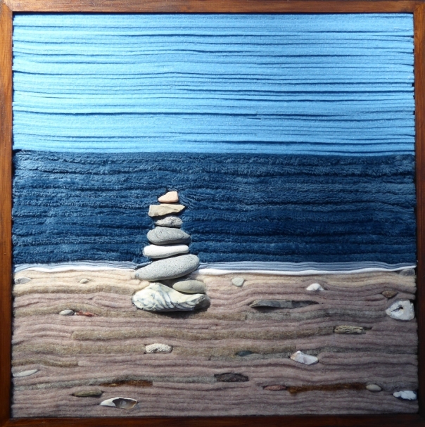 Wollfilz, Stoffe, Steine, Muscheln, Schnecken, Treibholz - daraus enstehen kleine und große Kunstwerke von schlicht bis zu bildgewordenen Geschichten. Ob Meer oder Landschaft, als Vorlage dient meist die Natur.