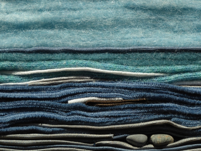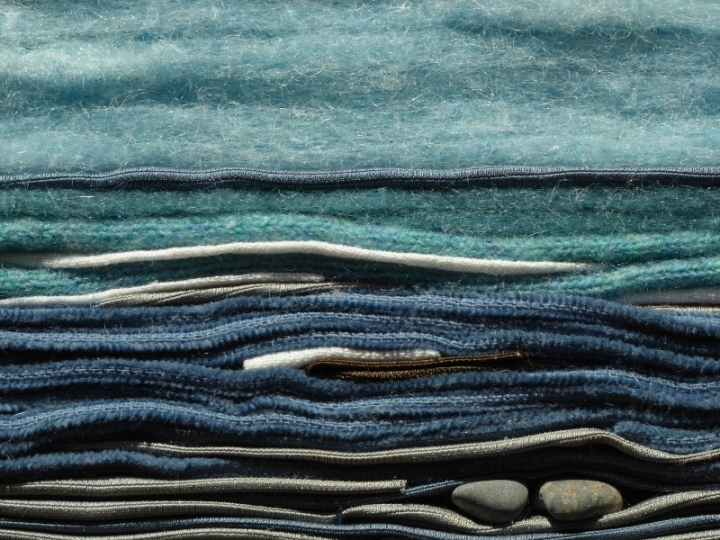 Stoffe, Wollfilz, oft auch Fundstücke vom Ostseestrand - daraus enstehen kleine und große Kunstwerke von schlicht bis zu bildgewordenen Geschichten. Ob Meer oder Landschaft, als Vorlage dient meist die Natur.